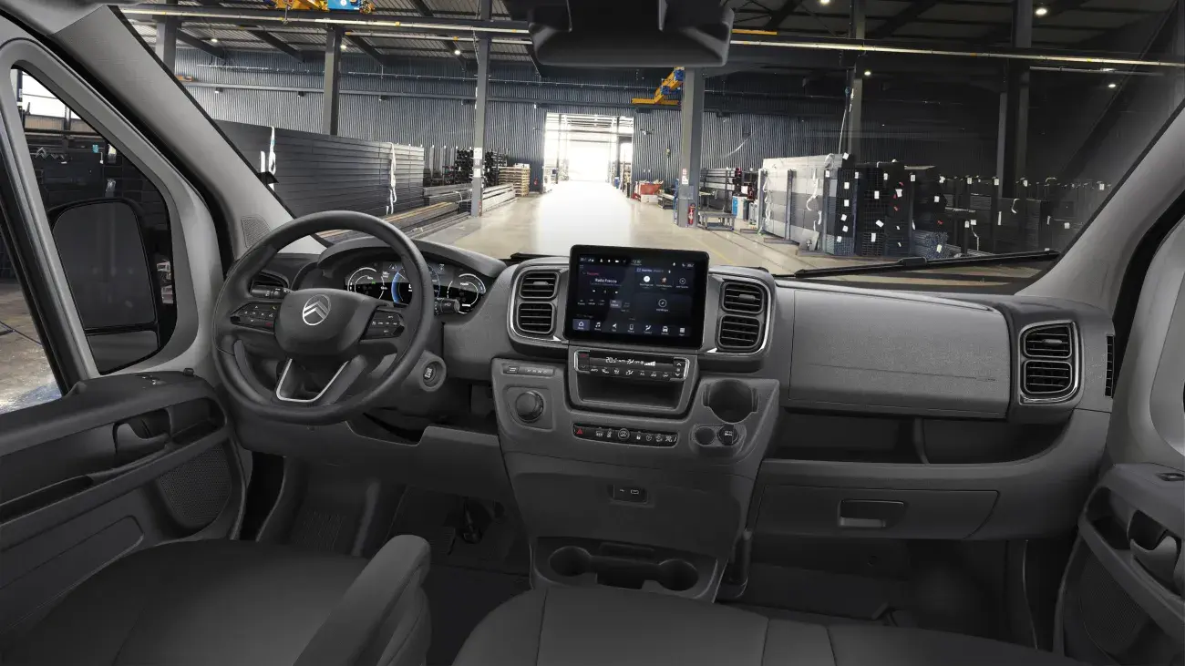 In de topmodellen van de ë-Jumper vind je een geavanceerd 10-inch touchscreen met radiofunctionaliteit, draadloze Bluetooth-verbinding, 3D-navigatie en zelfs een handige draadloze telefoonoplader. Voor goed zicht naar achteren is er ook nog eens een optionele digitale achteruitkijkspiegel die gekoppeld is aan een camera aan de achterzijde. Dankzij elektrische stuurbekrachtiging en een elektrische parkeerrem is het rijden met de Ë-Jumper zeer comfortabel.