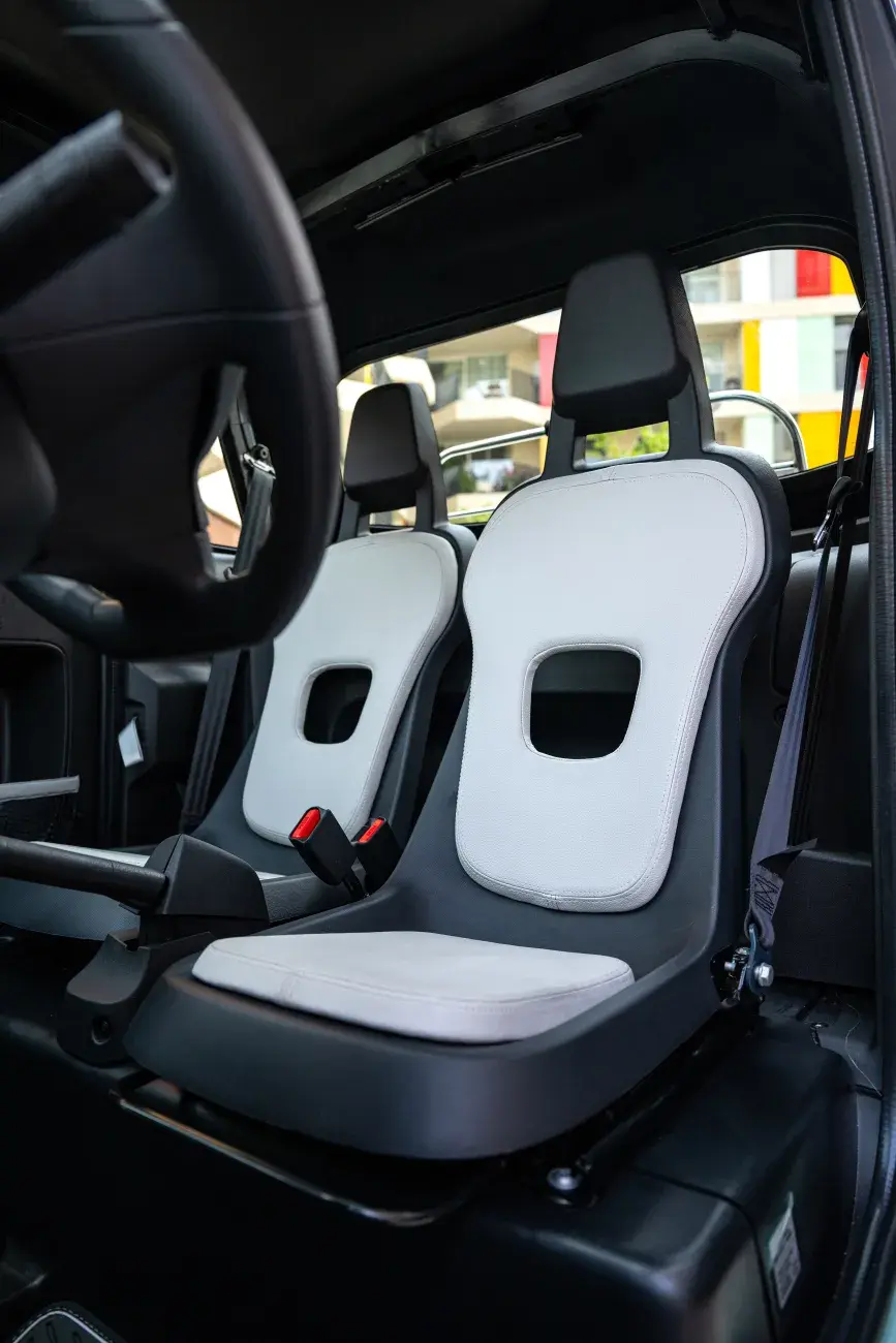De gesloten Fiat Topolino biedt subtiel maatwerk om het zomerse, Rivièra-karakter nog verder te benadrukken. Als extra optie kun je een handige douche toevoegen, ontworpen voor na een dagje strand. Personaliseer het uiterlijk naar wens met houtsticker-effecten op de deuren en geniet van de handige dakzonwering.