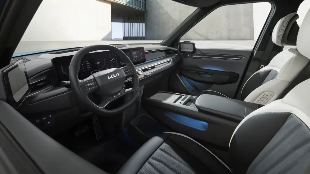 Bij de Kia EV9 staat duurzaamheid voorop! Met zorgvuldig gekozen materialen voor het interieur, zoals geüpcyclede en plantaardige stoffen, laten we een kleinere ecologische voetafdruk achter. Geniet van het comfort en de stijl van het strakke interieur, met stijlvol vegan leer op de zitvlakken en tapijt gemaakt van gerecyclede visnetten uit de oceaan. De bekleding en interieurstof zijn gemaakt van gerecyclede plastic flessen en wolvezels. Stap in de EV9 en draag bij aan een groenere toekomst, zonder in te leveren op comfort en stijl! De EV9 is verkrijgbaar in twee elektrische aandrijflijnvarianten, namelijk achterwielaandrijving (RWD) en vierwielaandrijving (AWD). En verschillende uitvoeringen: First Edition (76.1kWh RWD), Air, Plus, Plus Advanced (99.8kWh RWD of 99.8kWh AWD Dual Motor) en GT-Line (99.8kWh AWD Dual Motor of 99.8kWh AWD Dual Motor 6-zits).