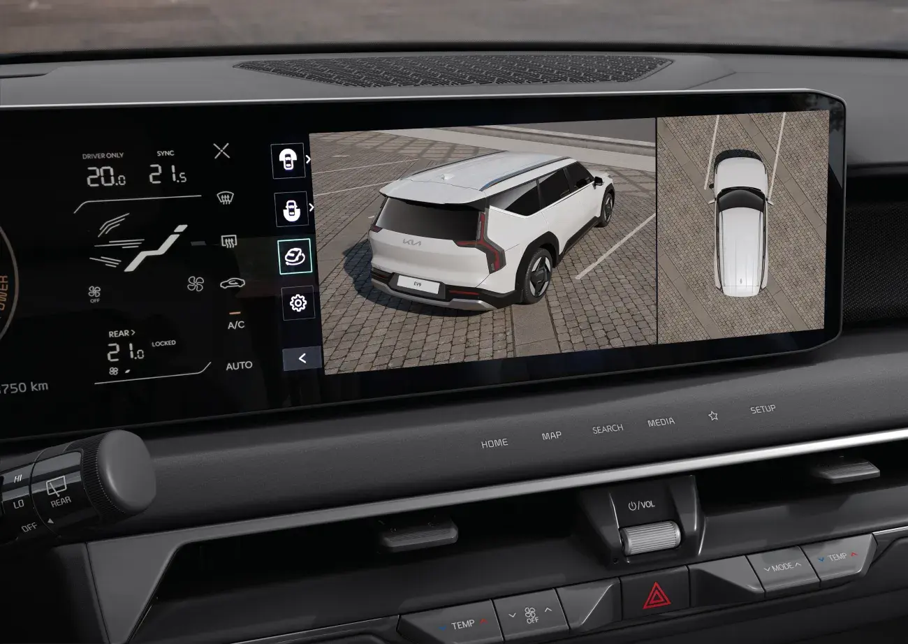 De Kia EV9 lijkt de toekomst, maar is er al! Geniet van zijn futuristische uitstraling, de handige digitale sleutel en het luxueuze drievoudige panoramadisplay boordevol informatie. Met optionele draaibare stoelen op de tweede rij wordt reizen een feestje, of je nu kletst, gamet of ontspant met je medereizigers. Bagage inpakken is een fluitje van een cent dankzij de ruime kofferbak en handige opbergruimte in de trunk. Veiligheid staat voorop met moderne systemen zoals autonoom rijden, snelheidsassistentie en parkeerhulp. En vergeet het premium Meridian-geluidssysteem niet voor de ultieme muziekervaring! Met zes oplaadmogelijkheden aan boord blijft iedereen happy!