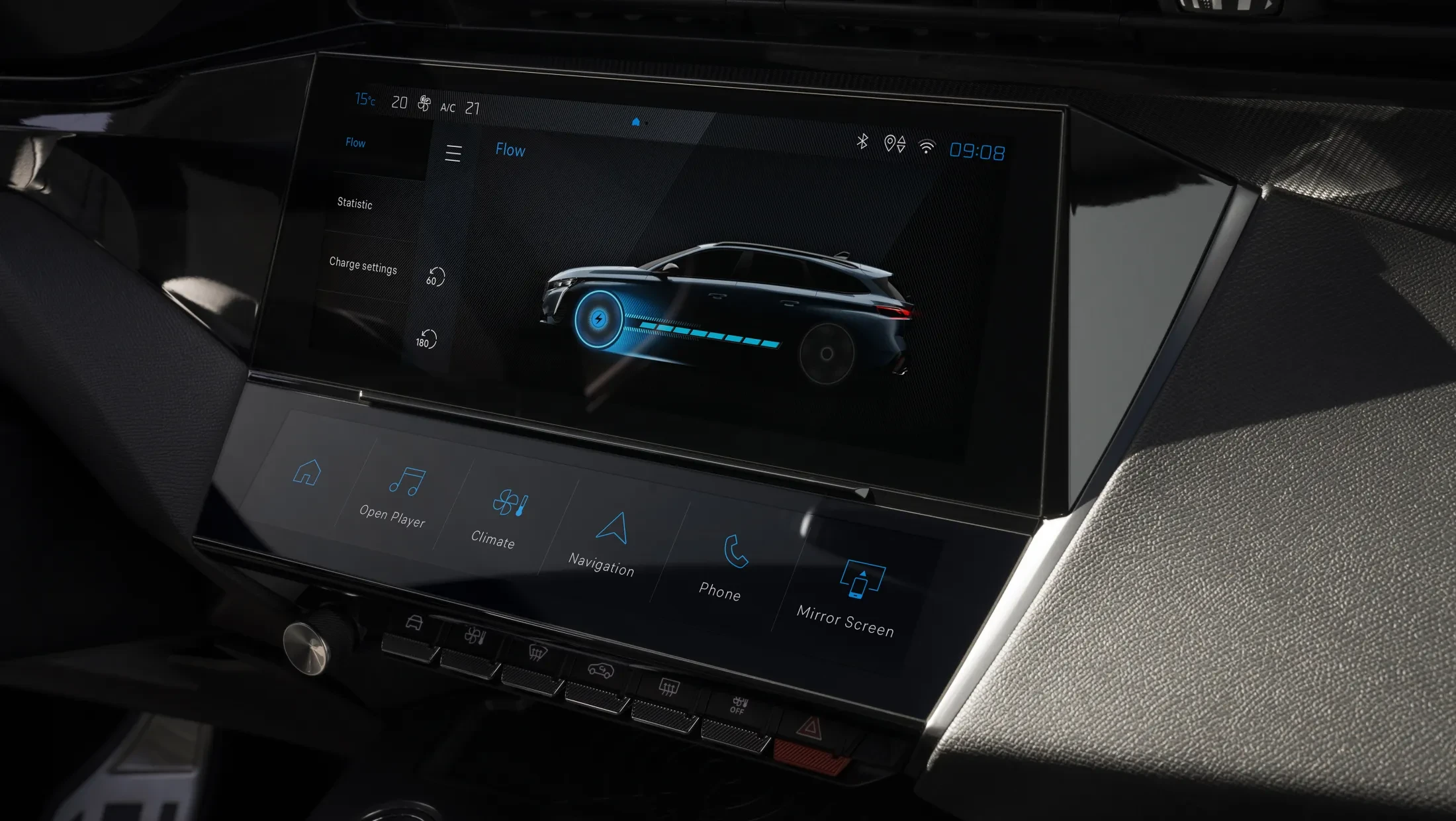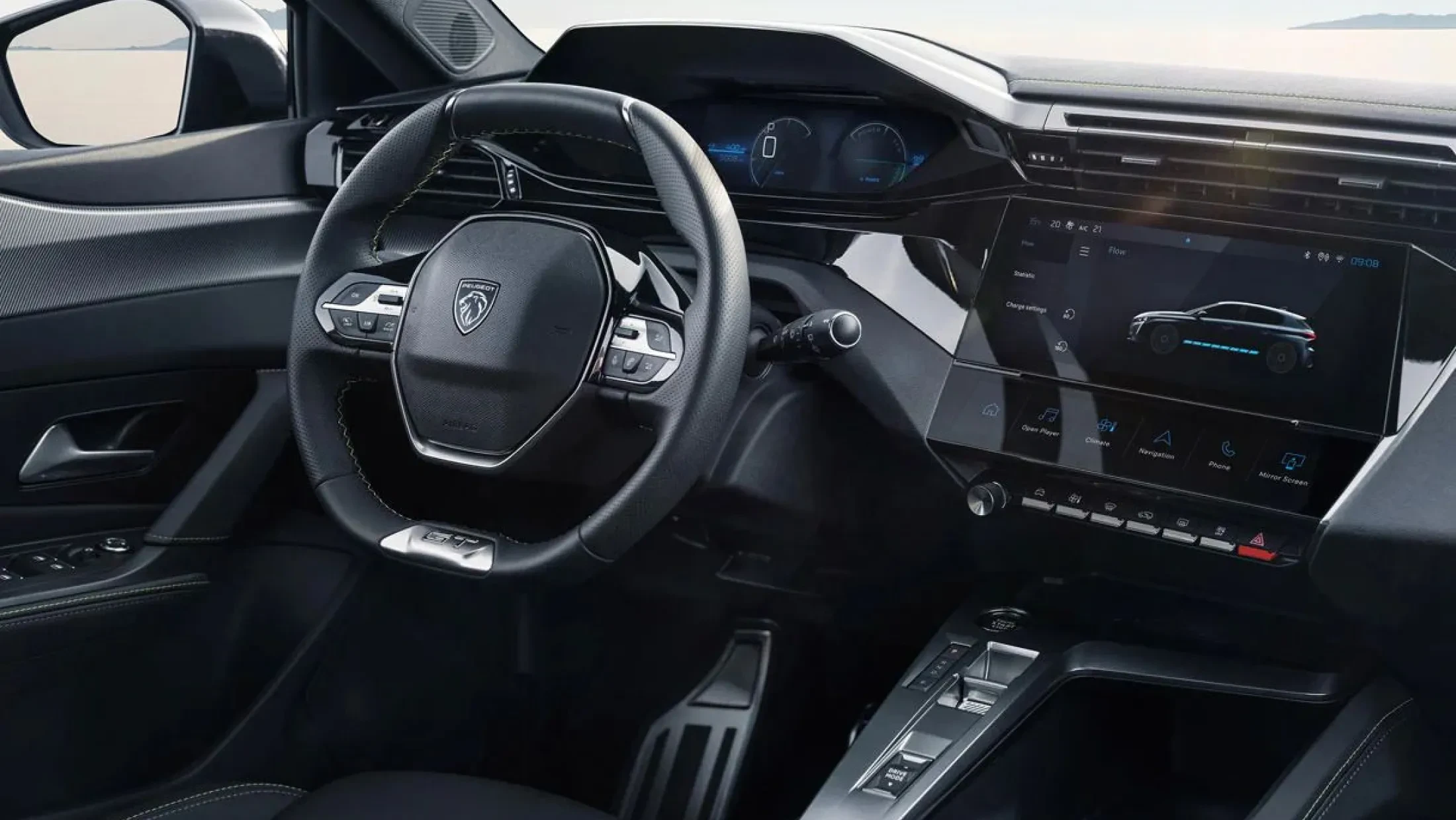 De krachtige uitstraling van de Peugeot e-308 SW wordt benadrukt door het nieuwe logo op de grille, samen met de langgerekte motorkap en de elegant geplaatste voorruit die ver naar achteren reikt. De sportieve lijnen komen volledig tot hun recht dankzij de smalle led-matrixkoplampen. De vernieuwde i-Cockpit geeft een waanzinnig overzicht. Het head-up display, de indrukwekkende driedimensionale weergave en het ruime infotainmentsysteem van maar liefst 10- inch geven je alle informatie binnen handbereik.